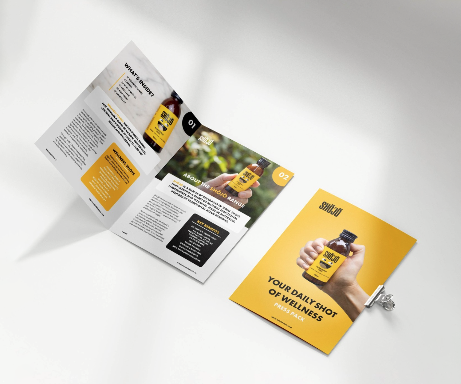 PR and Communications company Etoile, based in Sydney approached us to create a unique and eye catching PR pack – including some form of custom packaging, and informative flyer for Shojo.